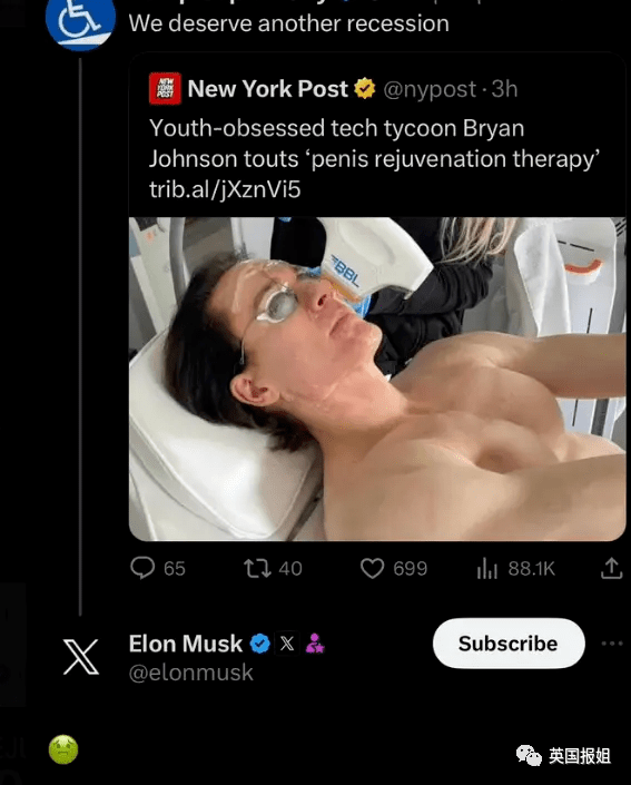 连马斯克都跑出来凑热闹,在他的新闻下发了个“要吐了”的表情。