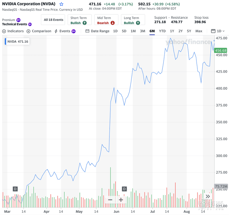 财报公布后,英伟达的股价在盘后交易中上涨了9.6%,创历史新高。