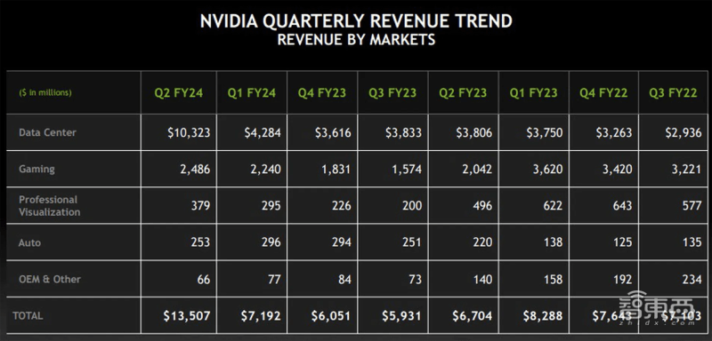 ▲英伟达2024财年Q2不同业务收入分布情况(图源:英伟达)