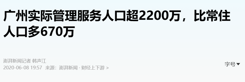 早在几年前,广州、深圳两地管理部门,就曾公开表示实际管理服务人口双双超过2200万人,而广州有关规划更是按照2500万人口规模,进行基础设施和公共服务配置。