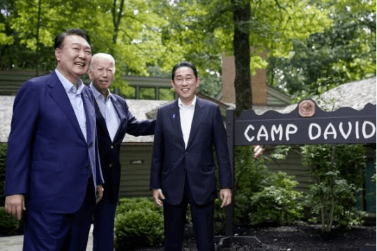 (图注:美日韩三国领导人在戴维营举行了三方会晤)