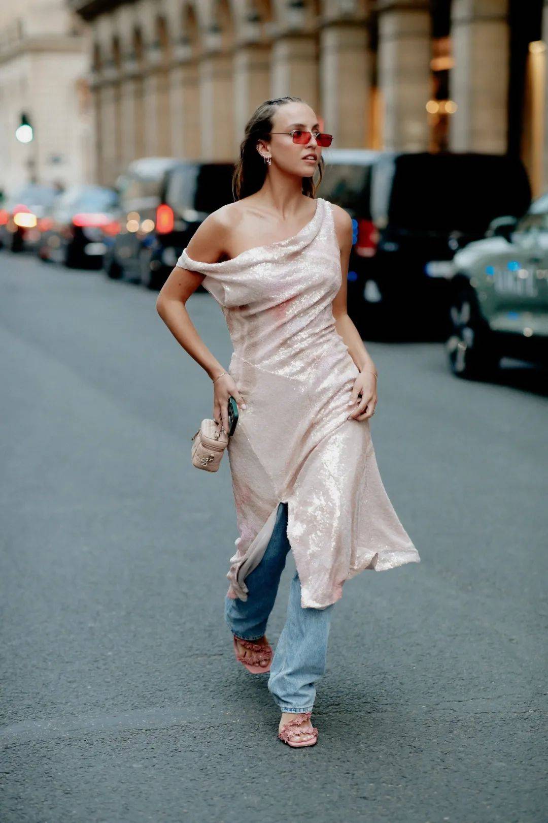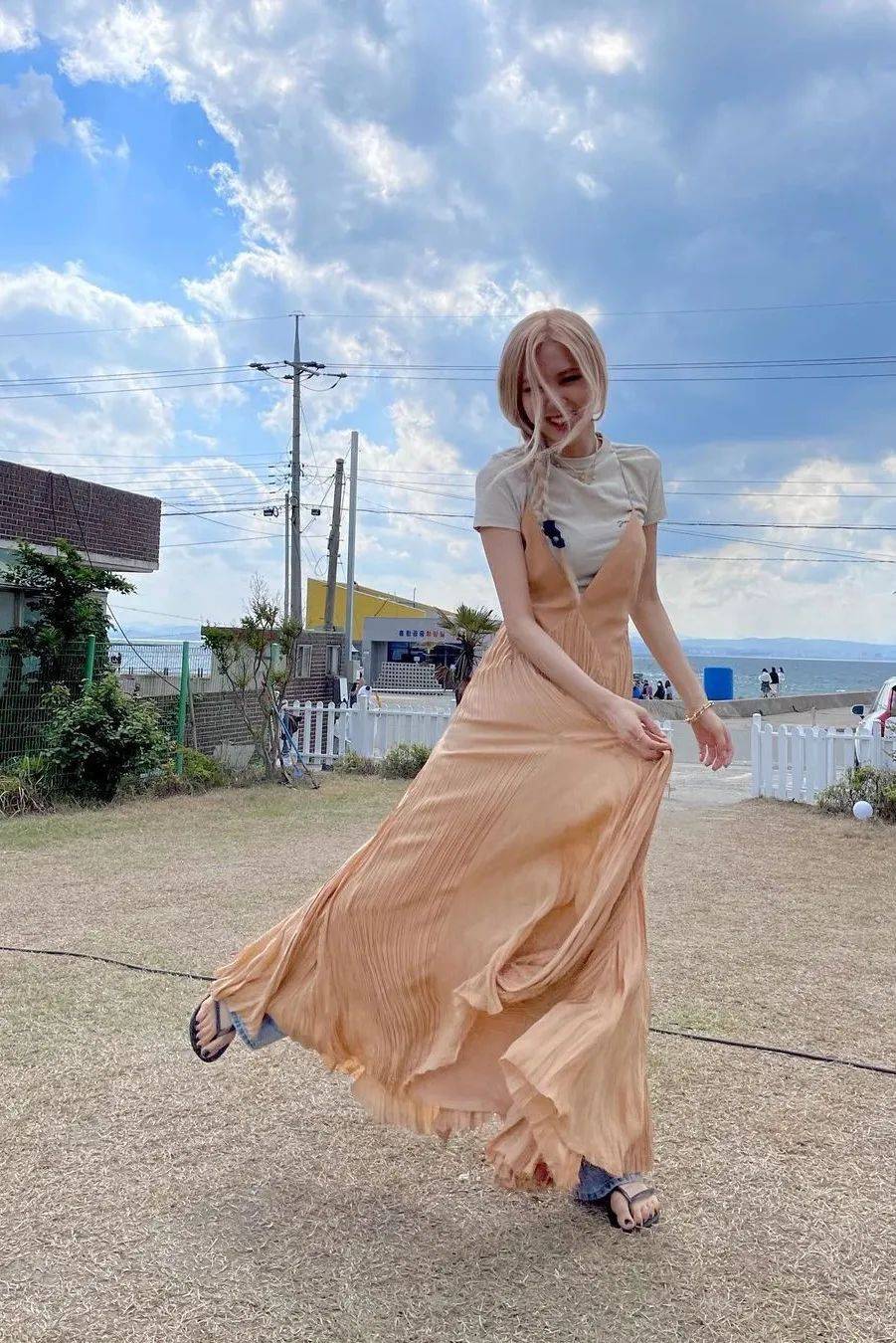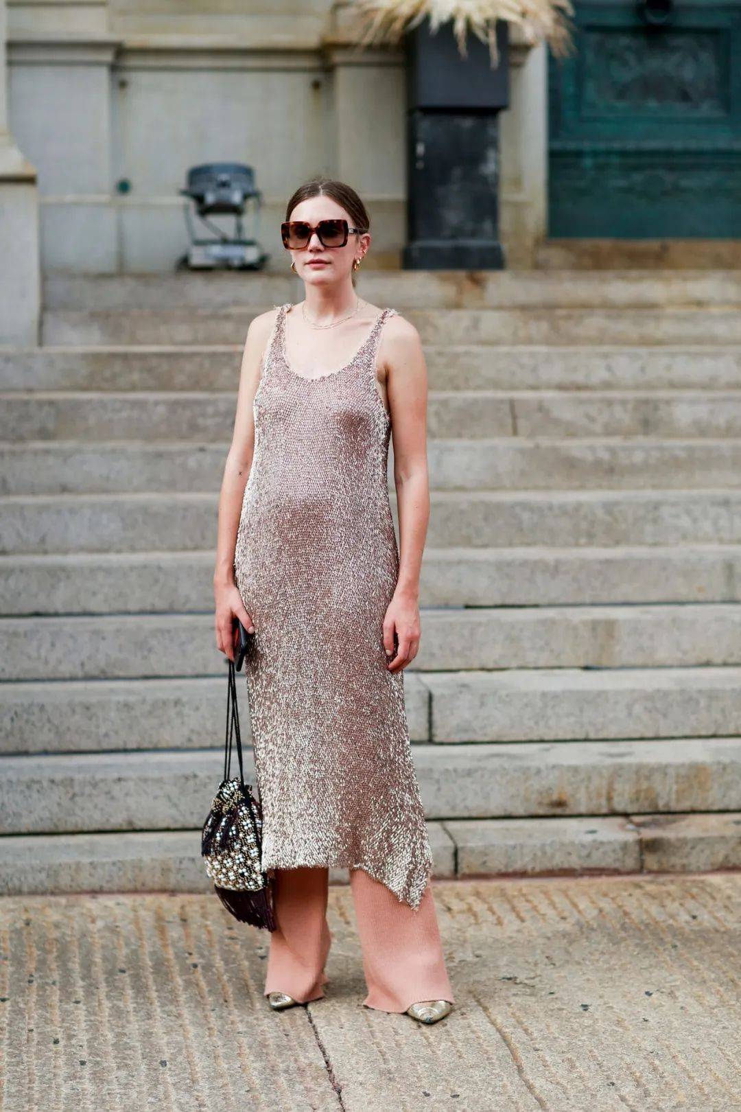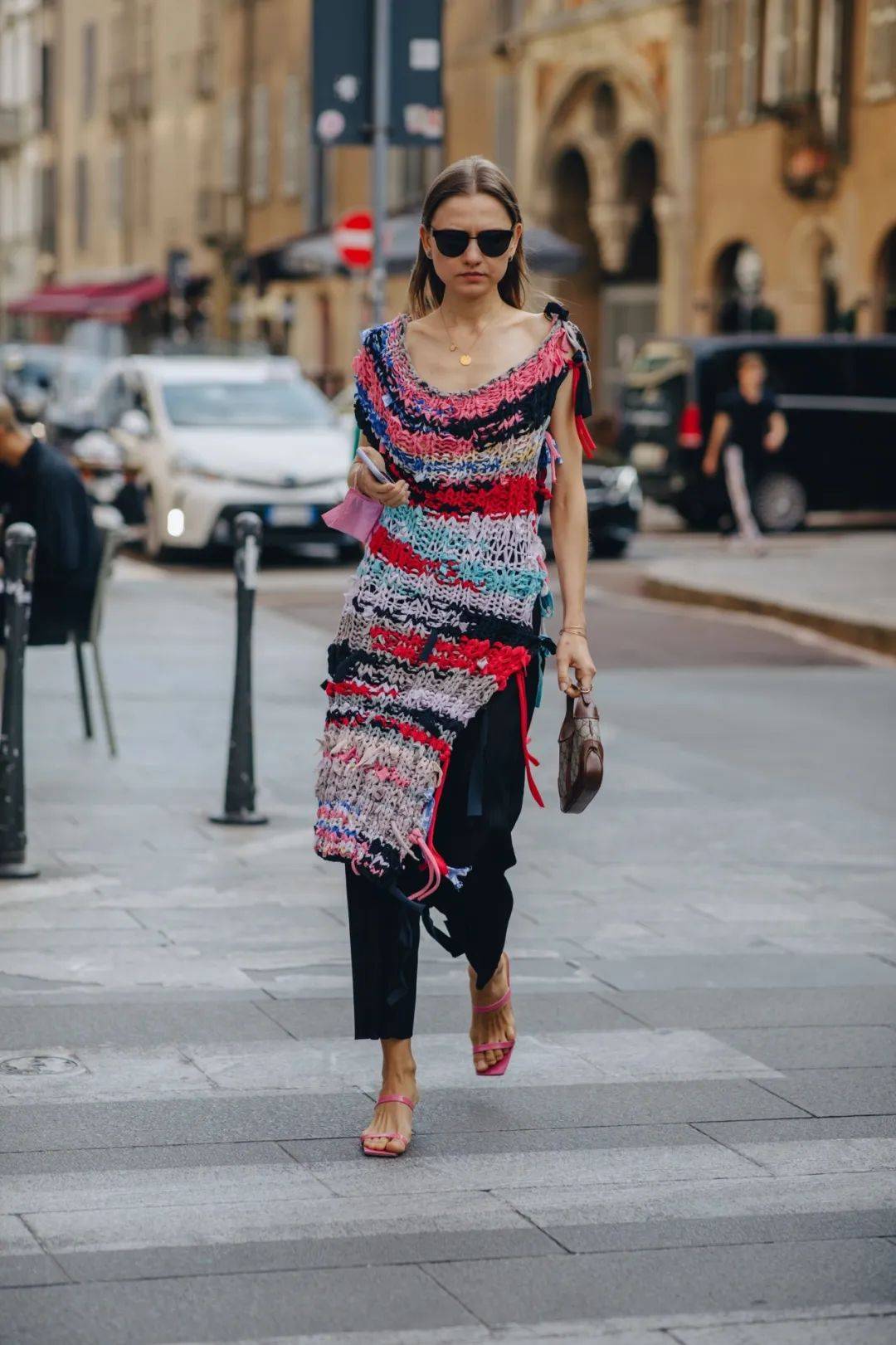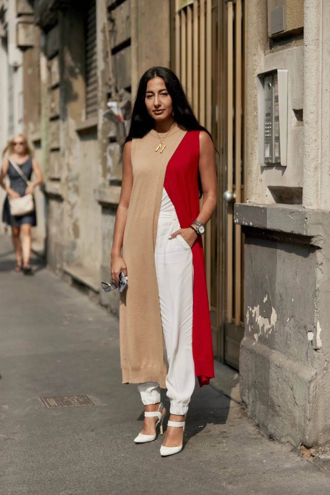 尤其是那些无袖长款连衣裙,真在38、39度的三伏天穿还是有点热的,可眼下这30度出头的气温叠穿一条裤子倒是正好。这样还能免去走光和室内外温差太大的困扰,算得上一举多得。