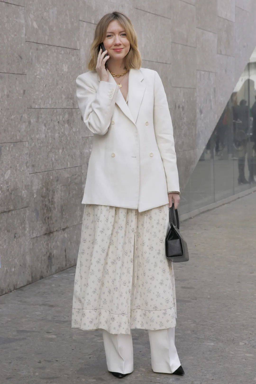 从街拍也能看出,就算时髦如穿梭在时装周的博主们,一旦把上半身装饰得太过华丽,那么长裙+裤子的叠穿造型遭遇负面评价也并非不可能。何况对于我们日常穿搭来说,很有必要将单品的实用性纳入考量。