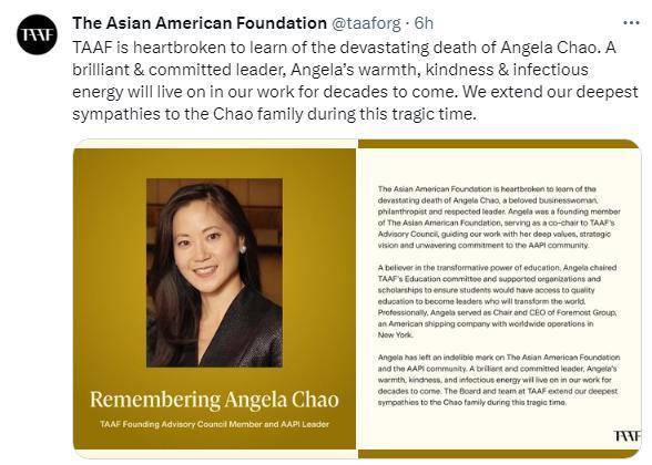 据介绍,50岁的赵安吉是福茂集团创办人赵锡成博士六个女儿中最小的一位,也是美国前劳工部长和交通部长赵小兰的妹妹,她从小就对航运充满兴趣。